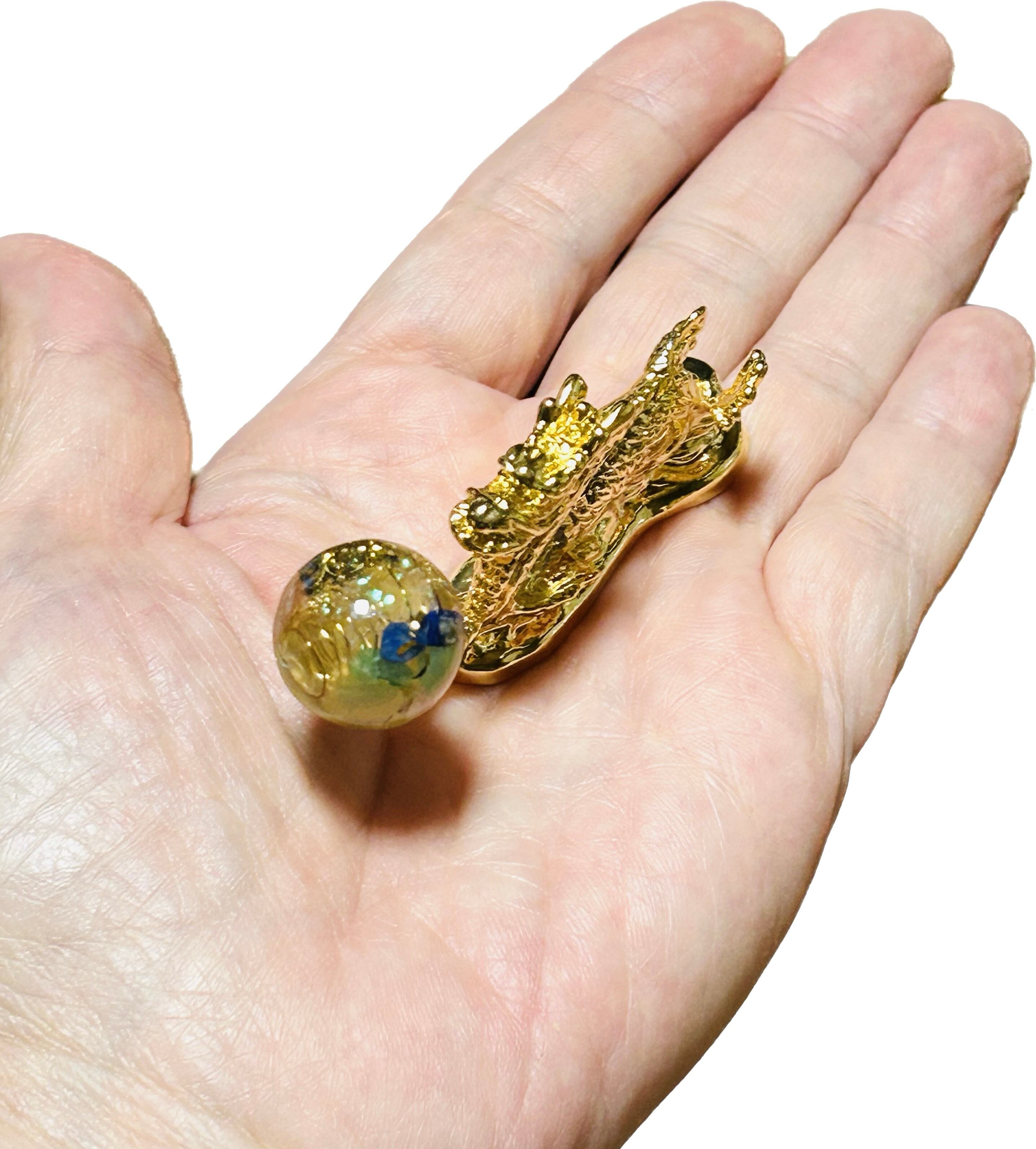 煌めく金の龍が掲げ持つオルゴナイト珠はネガティブなエネルギーを浄化し、プラスのエネルギーへと変換。