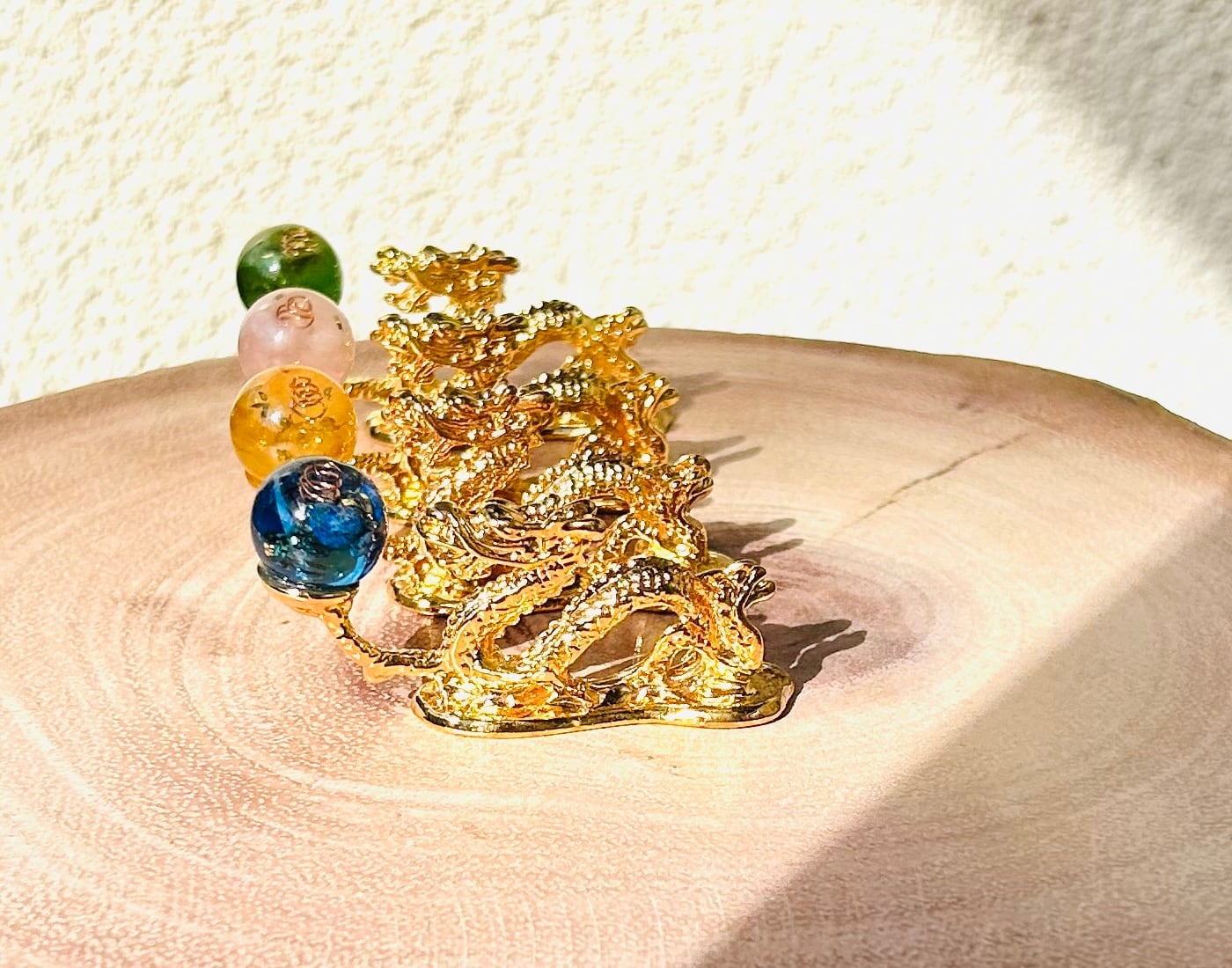 魂を守り導く、守神『オルゴナイト珠を掲げ持つ金龍』セット。